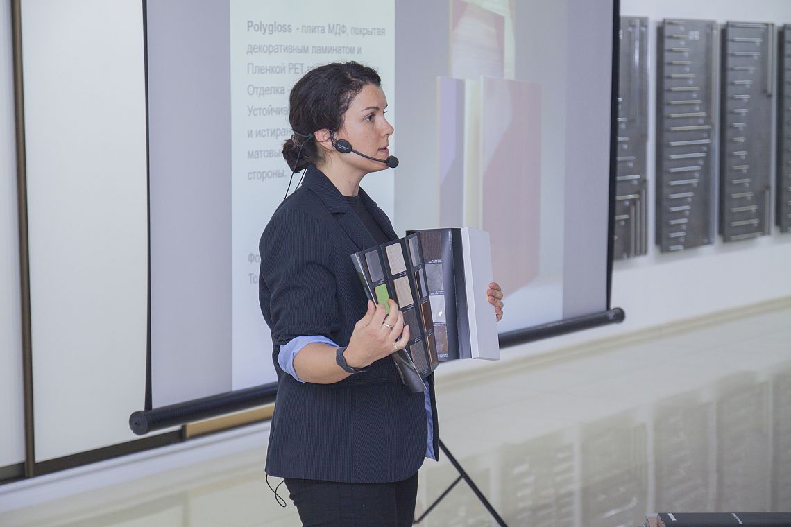 Dużym zainteresowaniem cieszyły się produkty Pianovo Metal, Kristall o raz Skóra. Podczas szkolenia Alesia pokazywała podobieństwa i różnice między frontem szklanym a frontem z płyt Kristall. Była też próba młotka, którą przetrwały jedynie płyty Kristall. Front szklany, zgodnie z przewidywaniem uczestników, został uszkodzony. Nic więc dziwnego, że powierzchnie Kristall cieszyły się dużym zainteresowaniem zarówno stolarzy, jak i projektantów. Dziękujemy oczywiście ekipie Viyar za organizację wydarzenia!
