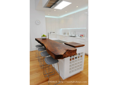 Czy nadal myślisz, że naczynia powinny być schowane za drzwiami szafek? Ten pogląd już jest przestarzały. Jeśli kuchnia ma wyspę - umieść na niej drewniany panel.