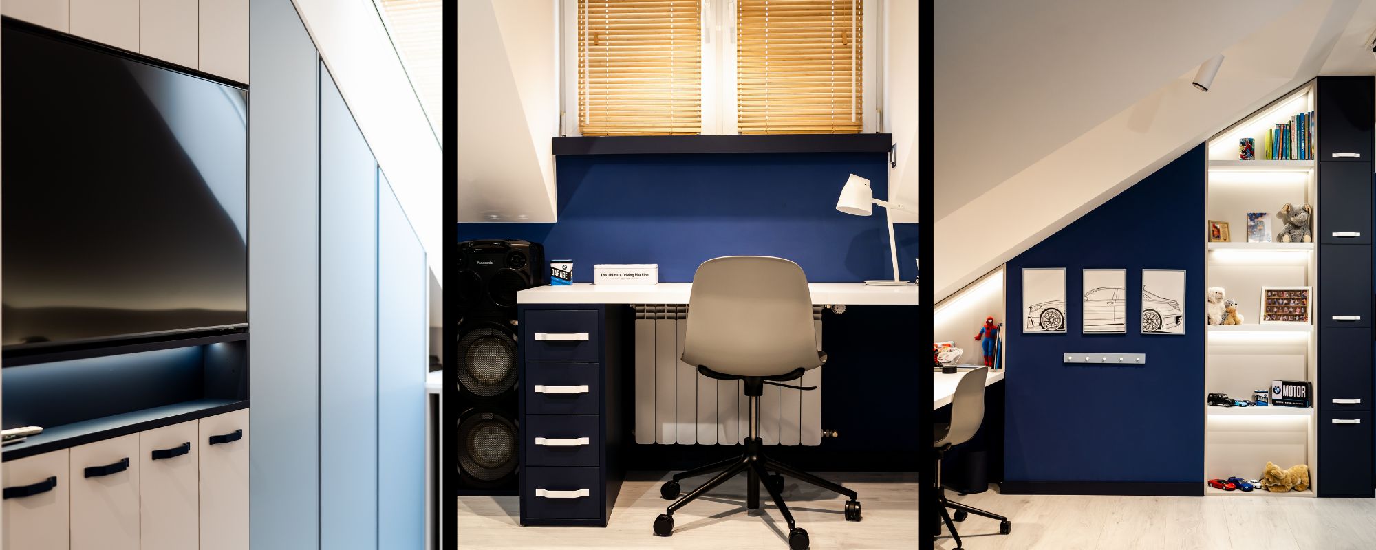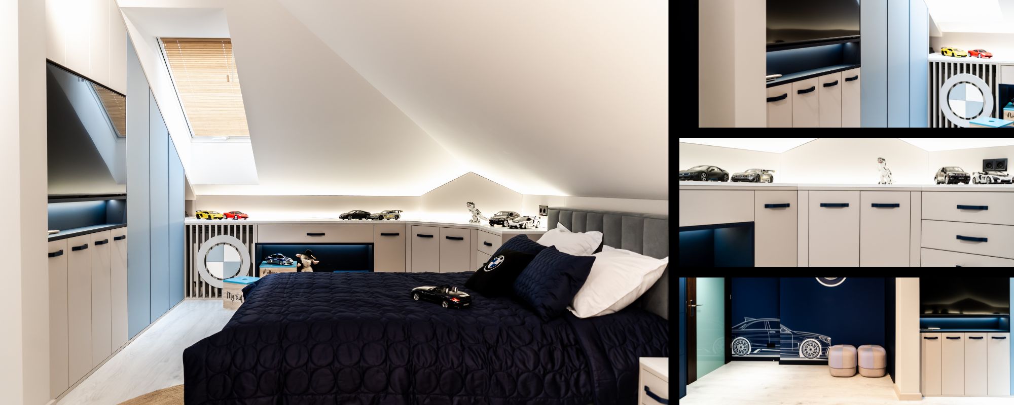 Właściciel pokoju jest jeszcze dzieckiem i to z konkretnymi (motoryzacyjnymi) upodobaniami, nawet jeśli w przyszłości je zmieni to wnętrze będzie „rosło” razem z dzieckiem a istotne obecnie "szczegóły" będzie można w miarę szybko (i względnie łatwo) wymienić na inne.