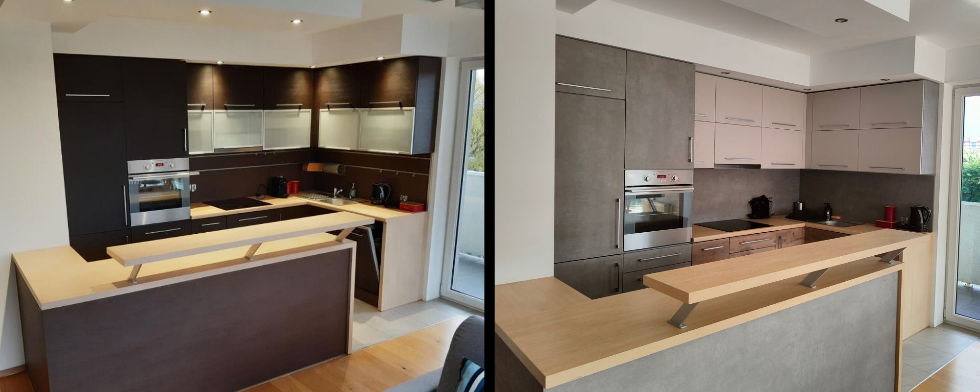 Ostatnio miałam przyjemność być częścią efektownej i taniej metamorfozy kuchni. Korpusy kuchenne i wszystkie dolne szafki zostały, wymieniliśmy w nich tylko uchwyty. Zmianie natomiast uległy szafki wiszące, blaty i okładzina między szafkami. Mało estetyczny okap został zastąpiony okapem szafkowym. Efekt? Spektakularna metamorfoza kuchni przy niewielkich zmianach.
