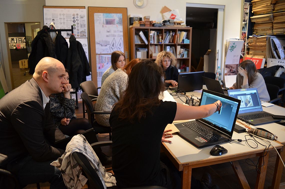 Projektowanie oraz konsultacje trwały cały semestr letni roku akademickiego 2017/2018. Pierwsze spotkanie ze studentami odbyło się w połowie lutego br. Od tego momentu regularnie odbywały się obrady konsultacyjne z przedstawicielami firm Niemann Polska, Zobal oraz ze stolarzem. Wszystko po to, aby doradzić i wskazać błędy konstrukcyjne.