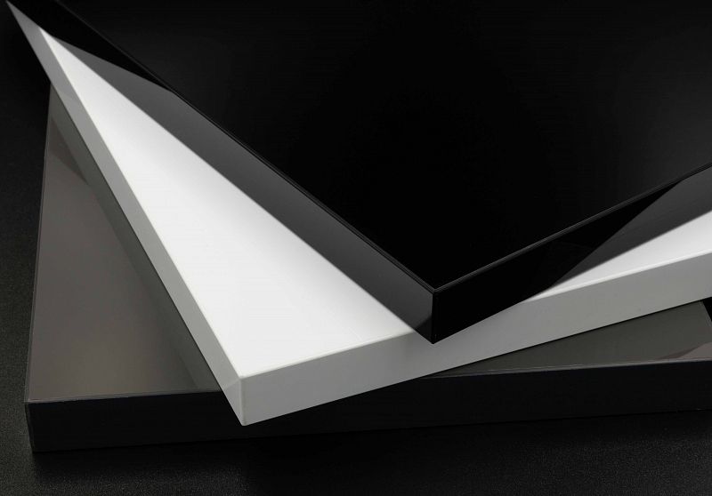 ACRYLUX BASIC - Płyty pokryte wysoko połyskowym laminatem ABS/PMMA o grubości 0,6 mm. Idealnie gładka powierzchnia i standardowa odporność na zarysowania. Tył płyty biały laminat PP.