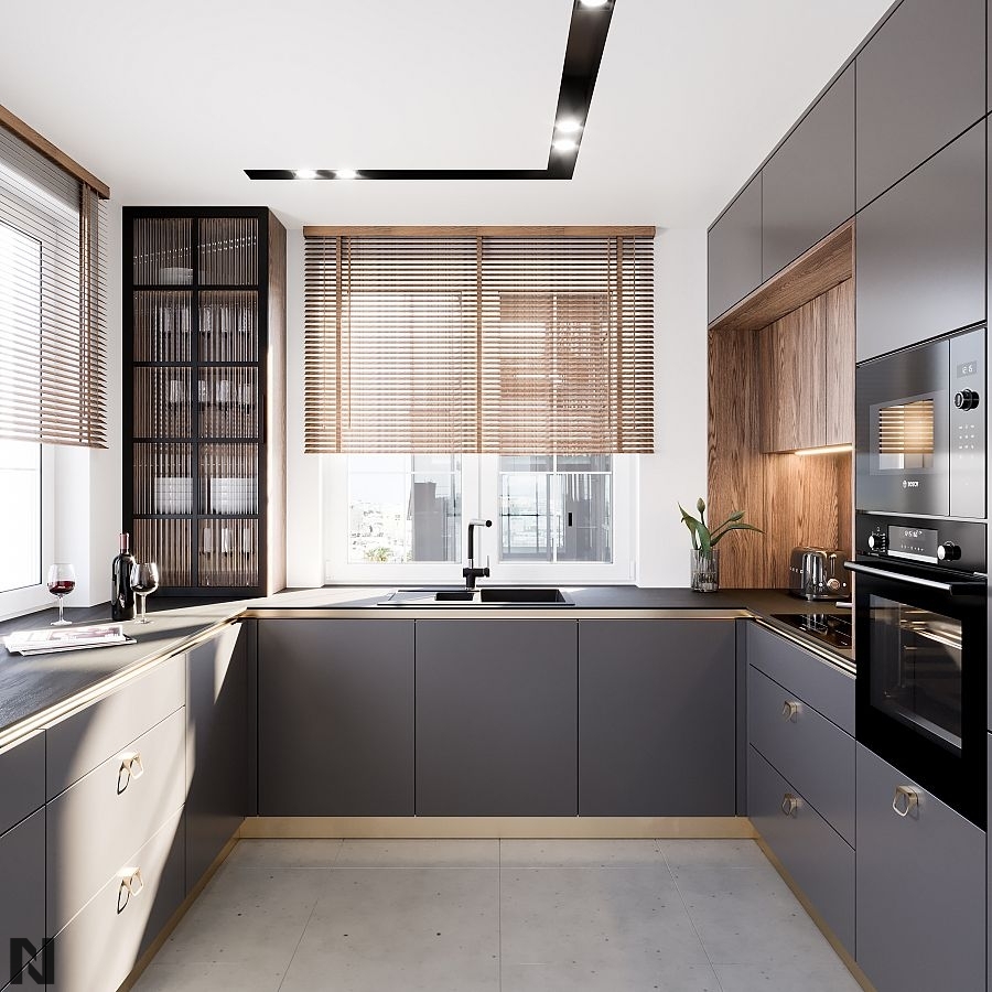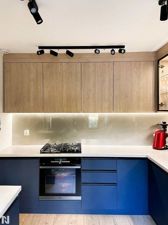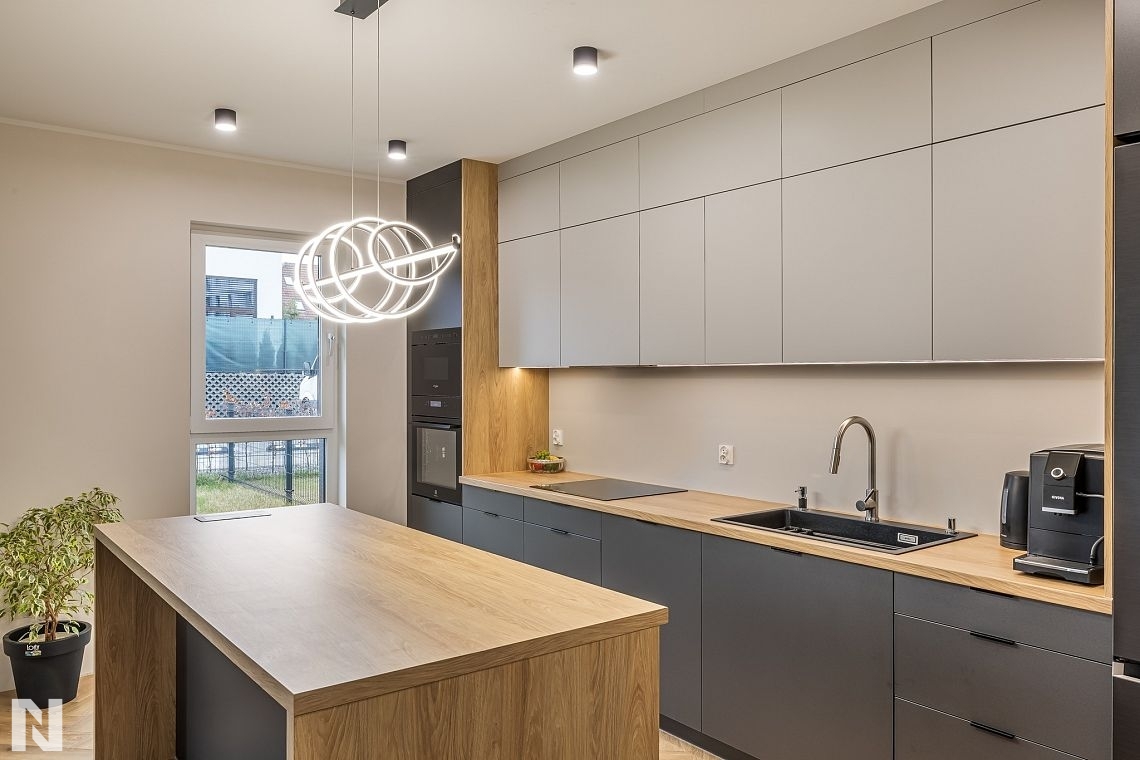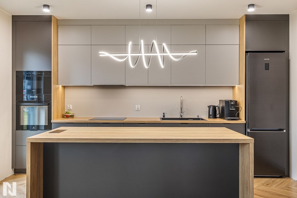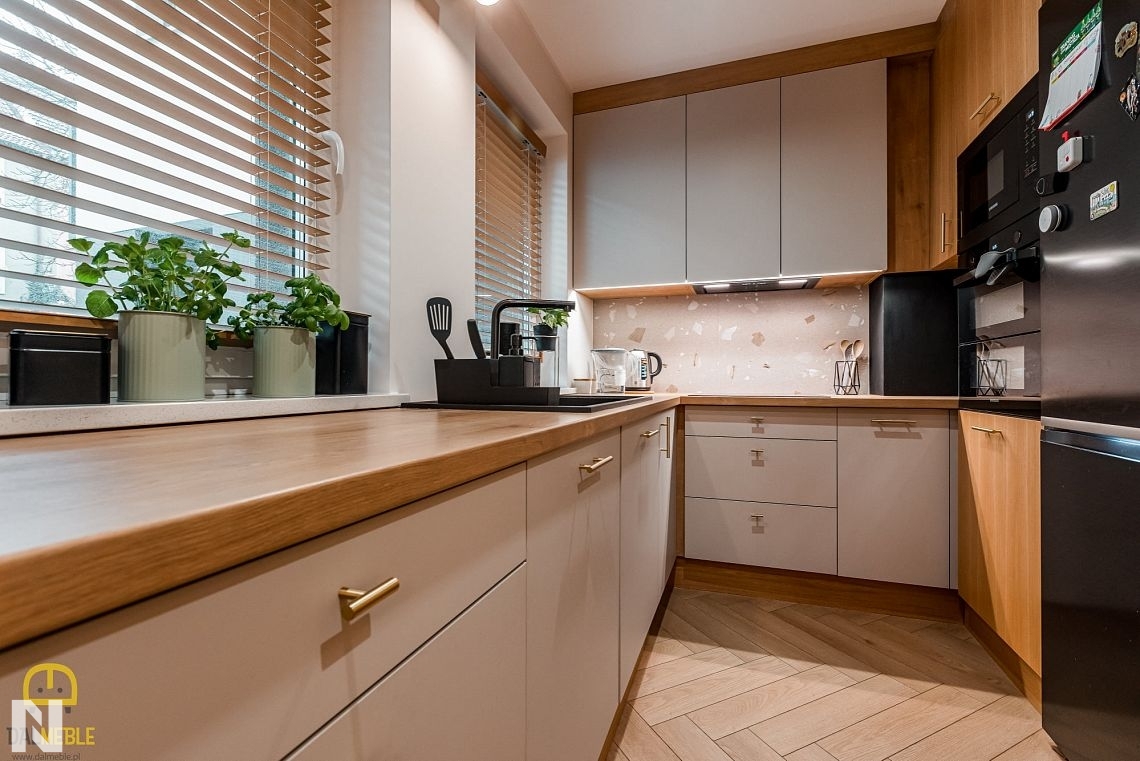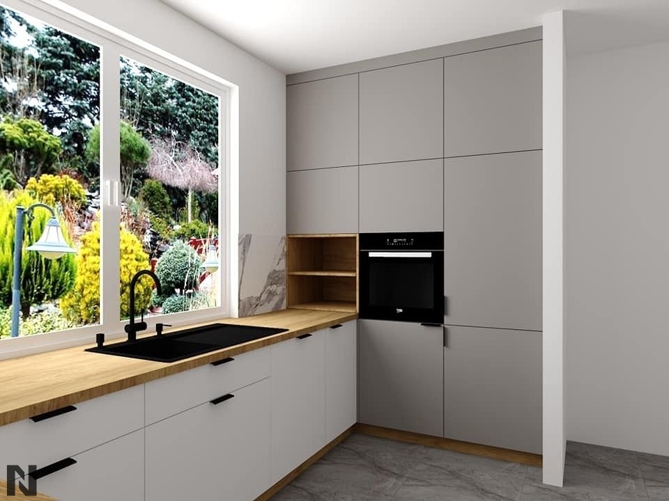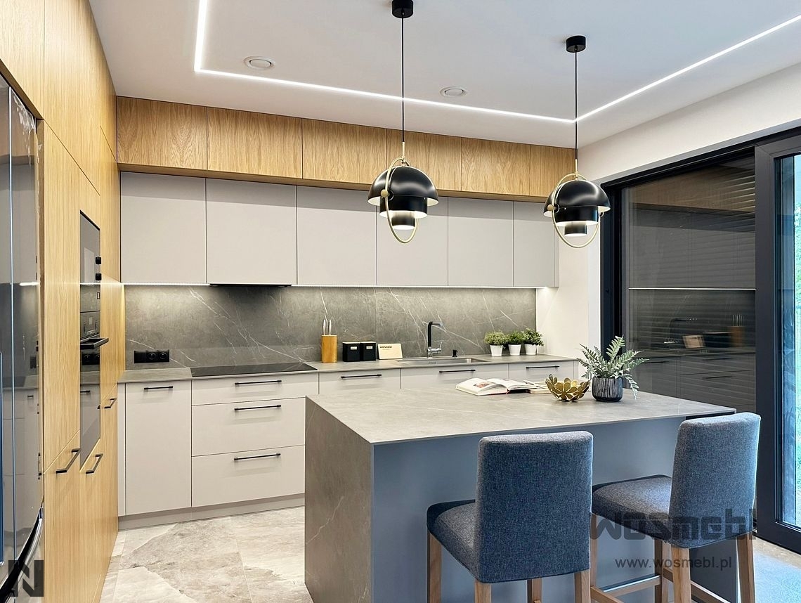 Matowe fronty z drewnianym blatem wizualizacja ALVOS meble na wymiar