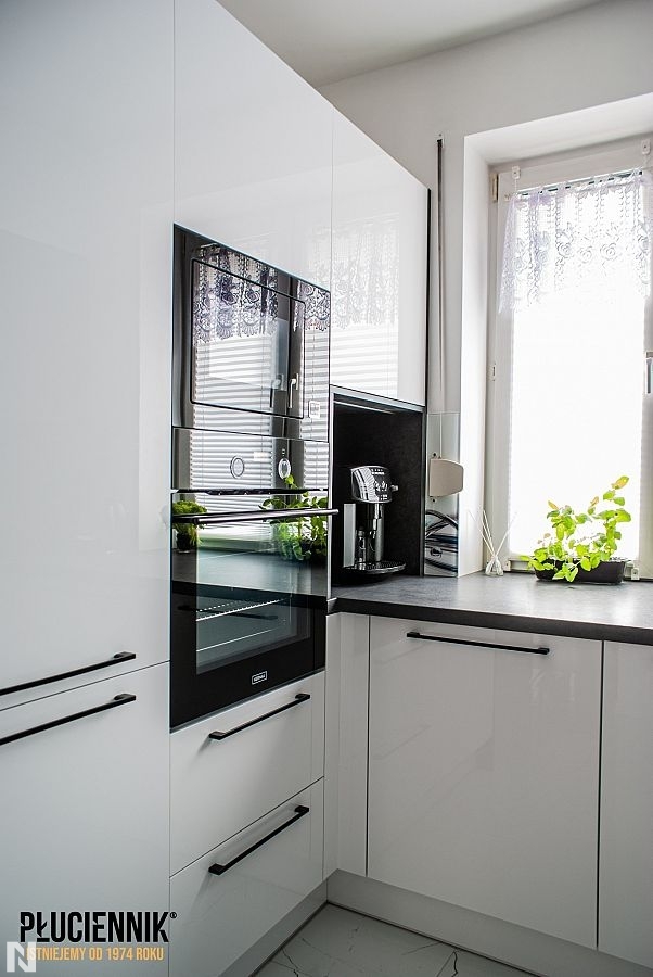 Kuchnia biało czarna według PIAW Projektowanie i aranżacja wnętrz