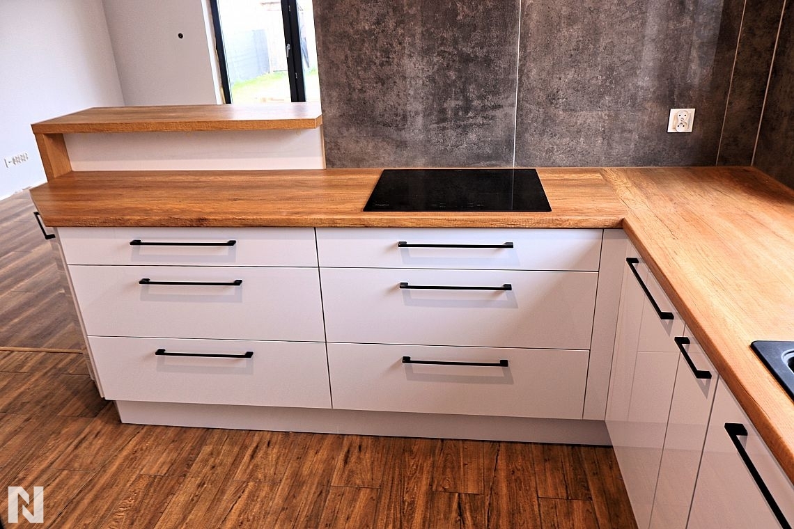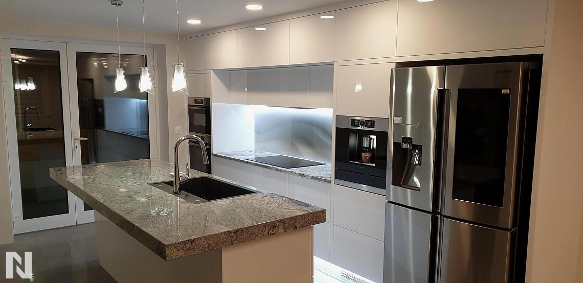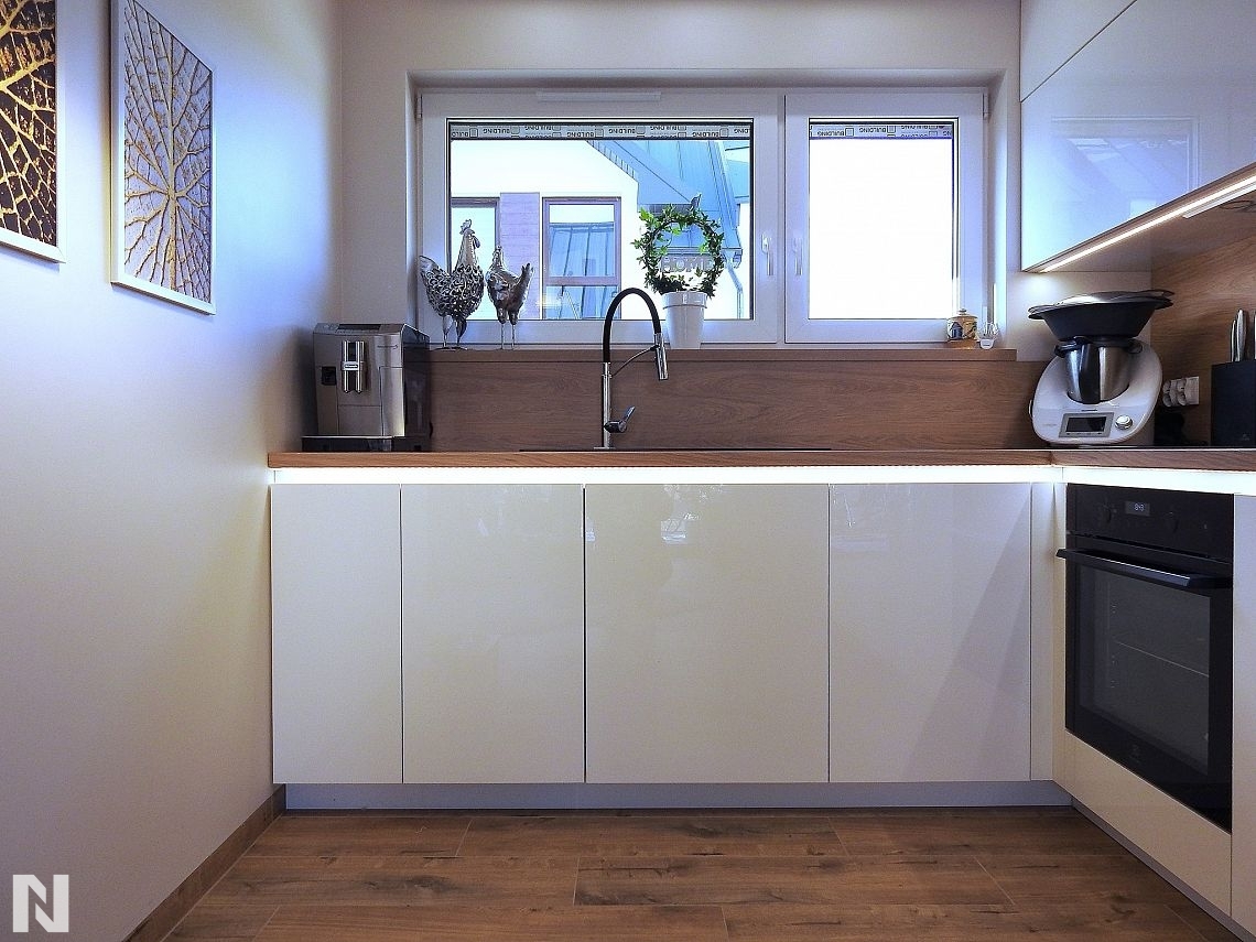 Kubanit 7408 /Śnieżnobiały 1982 - Fronty w wysokim połysku - Realizacja Virtuves LT